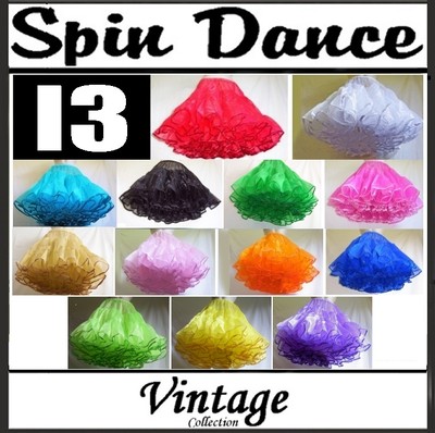 The Spin Dance petticoat accommodates a wide range of fashion requirements. Constructed in comfortable high quality organza fabric for maximum fullness and finished with ribbon edging on all layers. The result is a very light weight and very floaty petticoat that dancers love for its ability to achieve a horizontal spin line when dancing. Vintage wear & 50's fashion wear enthusiasts take advantage of the fullness achieved under their dresses. Whether dancing or just wearing for fun, all enjoy the lightweight floaty feel of the classic Spin Dance petticoat.